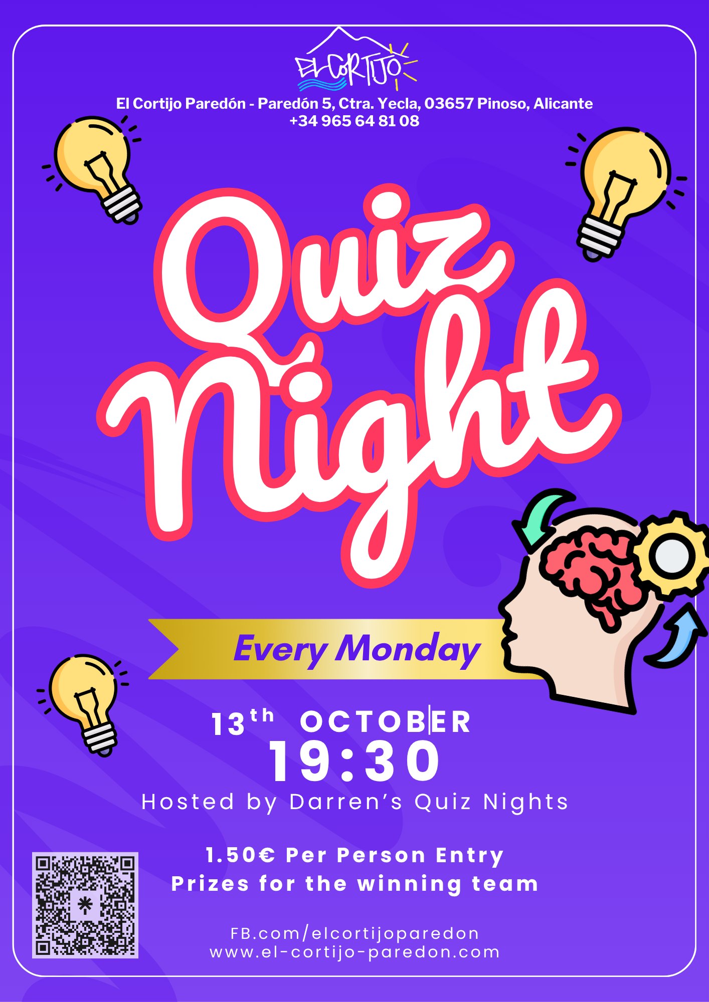 Join us for Darren’s Monday night Quiz Night here at El Cortijo Paredón, with prizes for the winning team and a delicious Chef’s choice menu to choose from, why would you spend your Monday evening anywhere else?