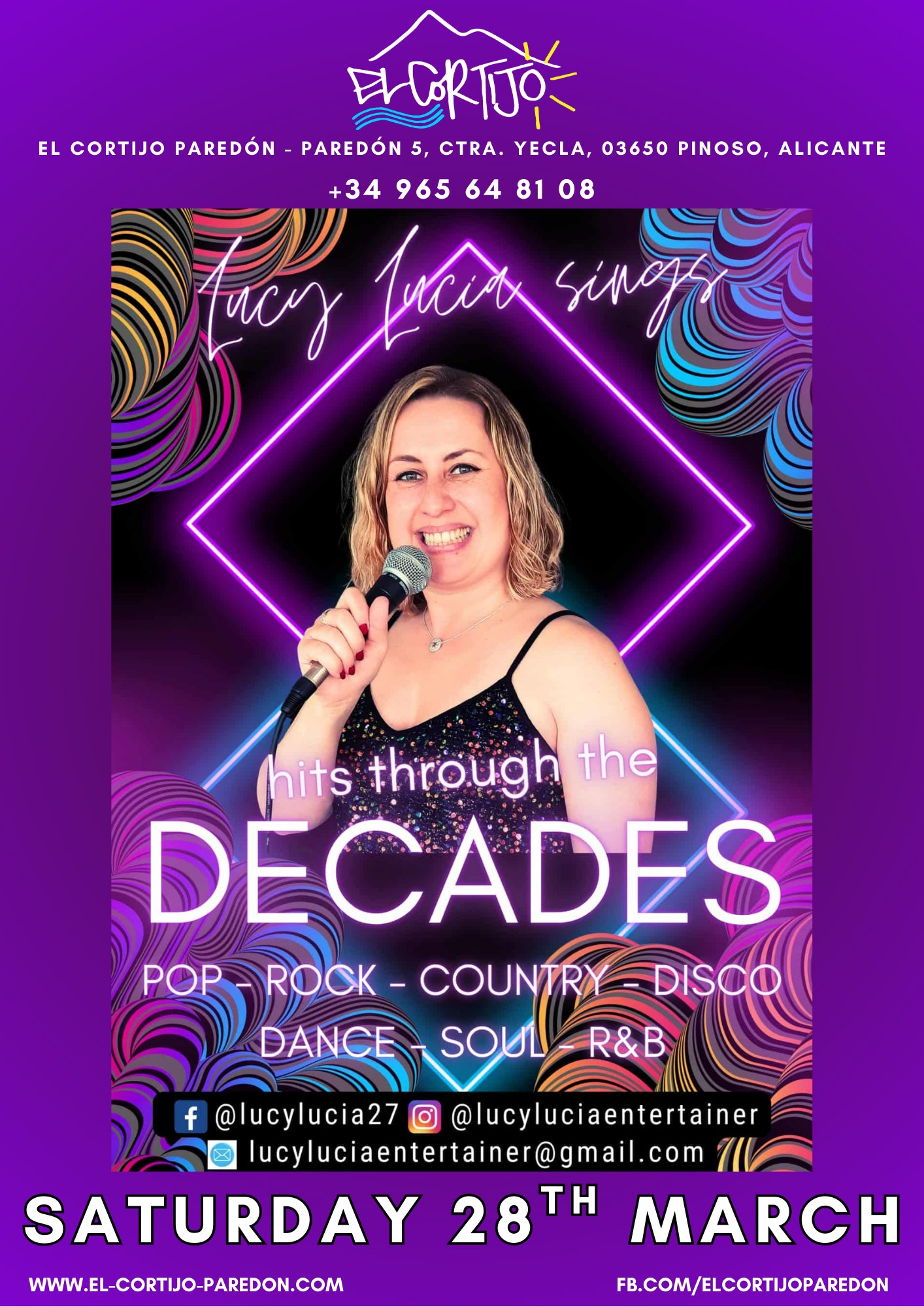 Carretera Yecla, Paredon 5, 03657 Pinoso, SpainJoin us on Saturday 28th February as we invite Sailor Smile for the first time to El Cortijo. This superb singer and guitarist due will be bringing their unique style to your favourite Soul, Pop & Rock hits. As always there will be a delicious Chef's Choice menu to choose from. Please call the bar […]